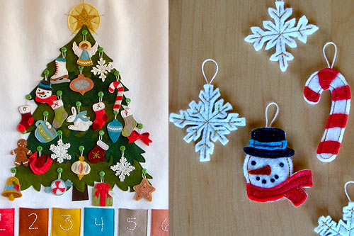 Ten kalendarz wymaga sporego nakładu czasu i umiejętności, ale sprawi radość każdemu dziecku. W kiszonkach pod choinką pochowane są różne ozdoby, każdego dnia dziecko wyjmuje jedną i zawiesza na drzewku, tak, że 24 grudnia cała choineczka jest już ubrana.